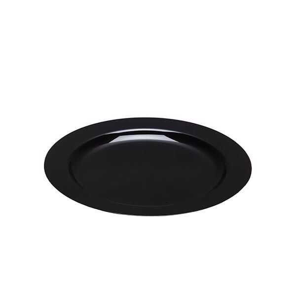 Sert plastikten üretilmiş,19 cm çapında siyah plastik yuvarlak tek kullanımlık tabaktır.